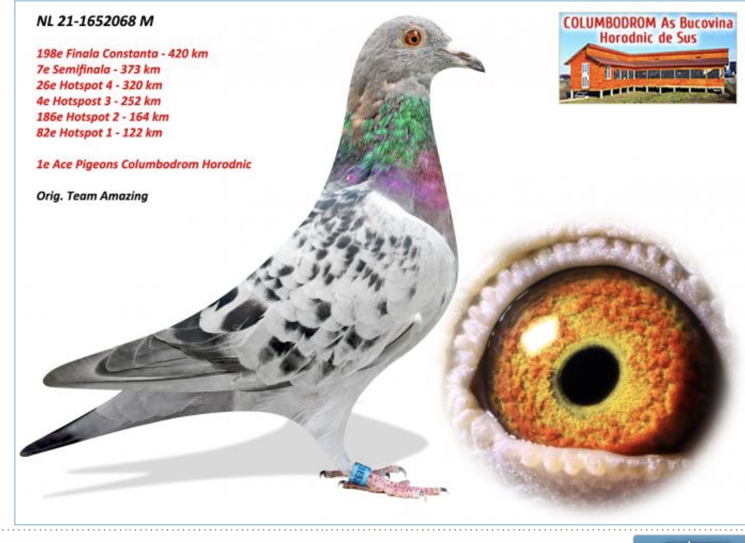 MOTHER TO *RO 21-070701* 22/1043P DERBY HORONIC 505 KM HARD RACE FIRST PIGEON 952M/MIN ONLY 75 PIGEONS IN FIRST DAY;RO 22-128711--4PLACE /970 PIGEOS FINAL RACE CAJVANA OLR 490 KM ( VERY HARD RACE ONLY 11 PIGEONS IN FIRST DAY),TO*RO 22-0246951*PATTAYA FINAL RACE